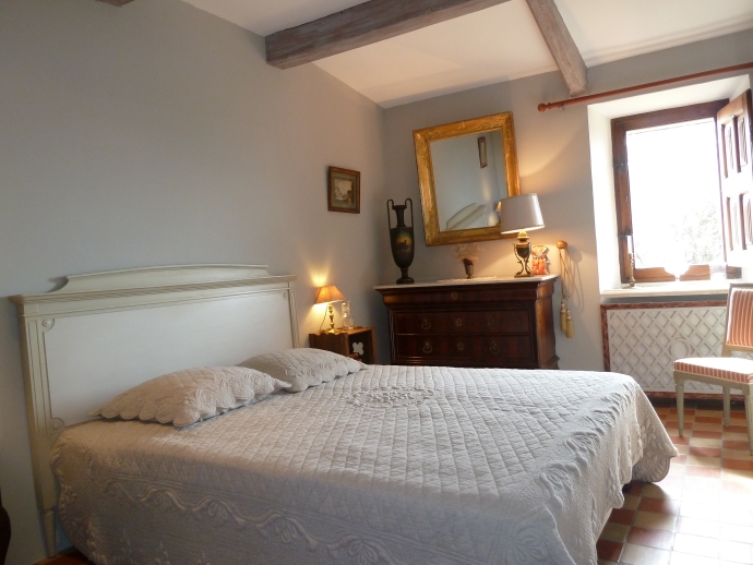 Toscane Room: with a view on the small french garden and en-suite shower room (walk in shower), WC.